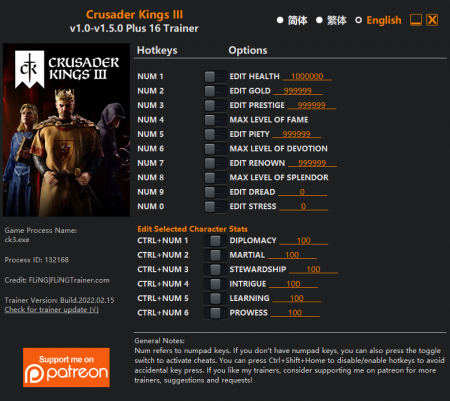 На данной странице вы можете скачать читы для игры Crusader Kings 3: Royal Court. Трейнер позволяет вам получить различные преимущества в игре, например максимальный престиж или бесконечное золото, очки дипломатии и т.д.