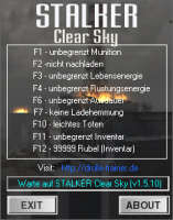 Простой в использовании трейнер для Сталкер Чистое Небо версии 1.5.10 также работает и на других версиях игры.